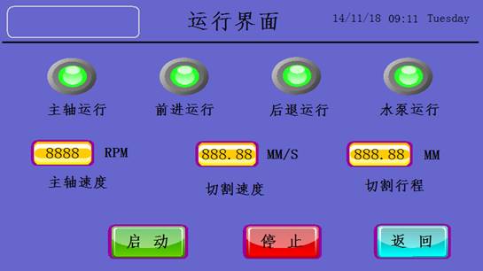 ● 點(diǎn)動(dòng)速度:范圍0-15mm/s,是指是手動(dòng)前進(jìn)后退速度,對(duì)設(shè)備操作不熟練時(shí),應(yīng)設(shè)置小一點(diǎn),避免切割片撞上工件。
